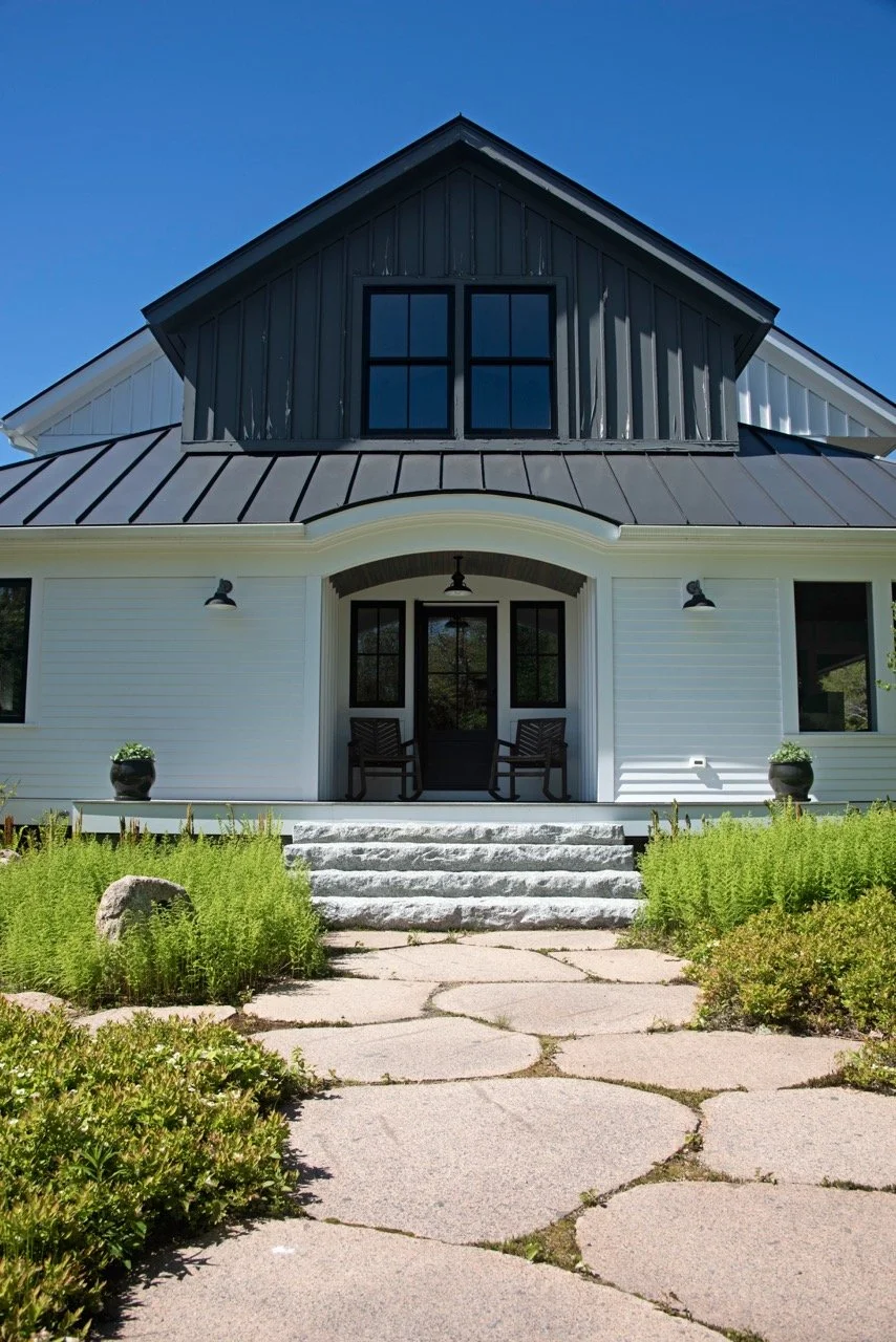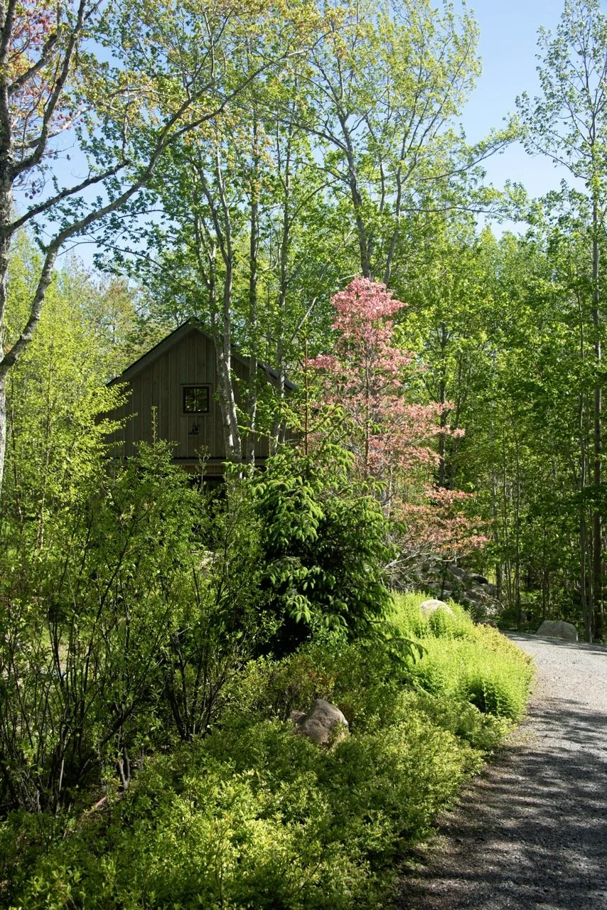 As the clients planned construction of a new home just outside the border of Acadia National Park, they wanted the building incorporated seamlessly into the existing landscape. LARK began by selecting a few of the granite boulders strewn around the site – glacial erratics deposited here by the Laurentian ice sheet – and having them sawn into natural-edge pavers for the paths and patios. Broad sweeps of bunchberry, low-bush blueberry, hay-scented fern and moss – our most characteristic native groundcovers – integrate the outdoor spaces with the surrounding ledge and blueberry barrens. Arrowwood, hobblebush, dogwood and red maple – all locally native trees and shrubs – were installed between the house and the public road, creating a foreground for views into the National Park. The project was featured in the October 2023 issue of Maine Home and Design.
