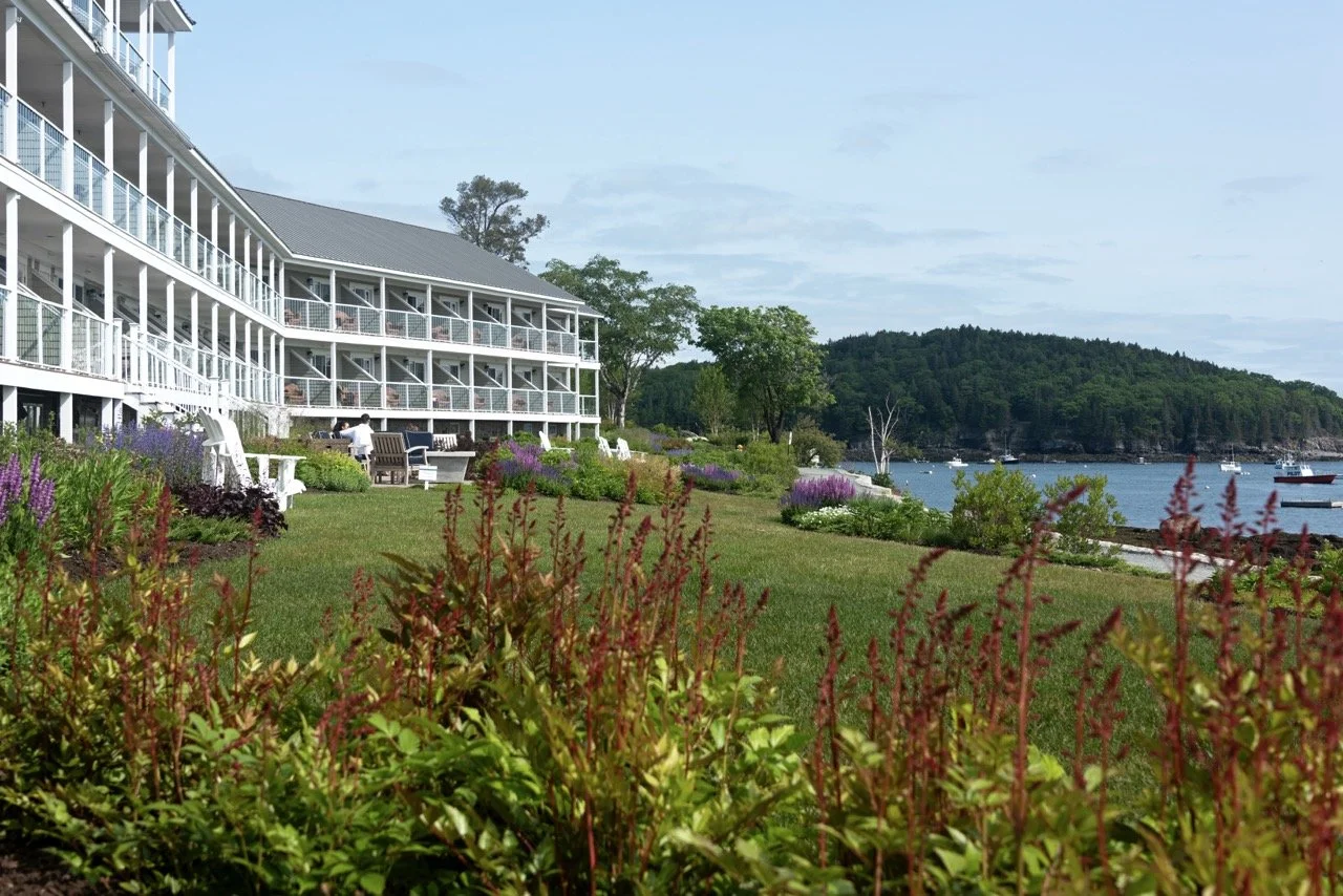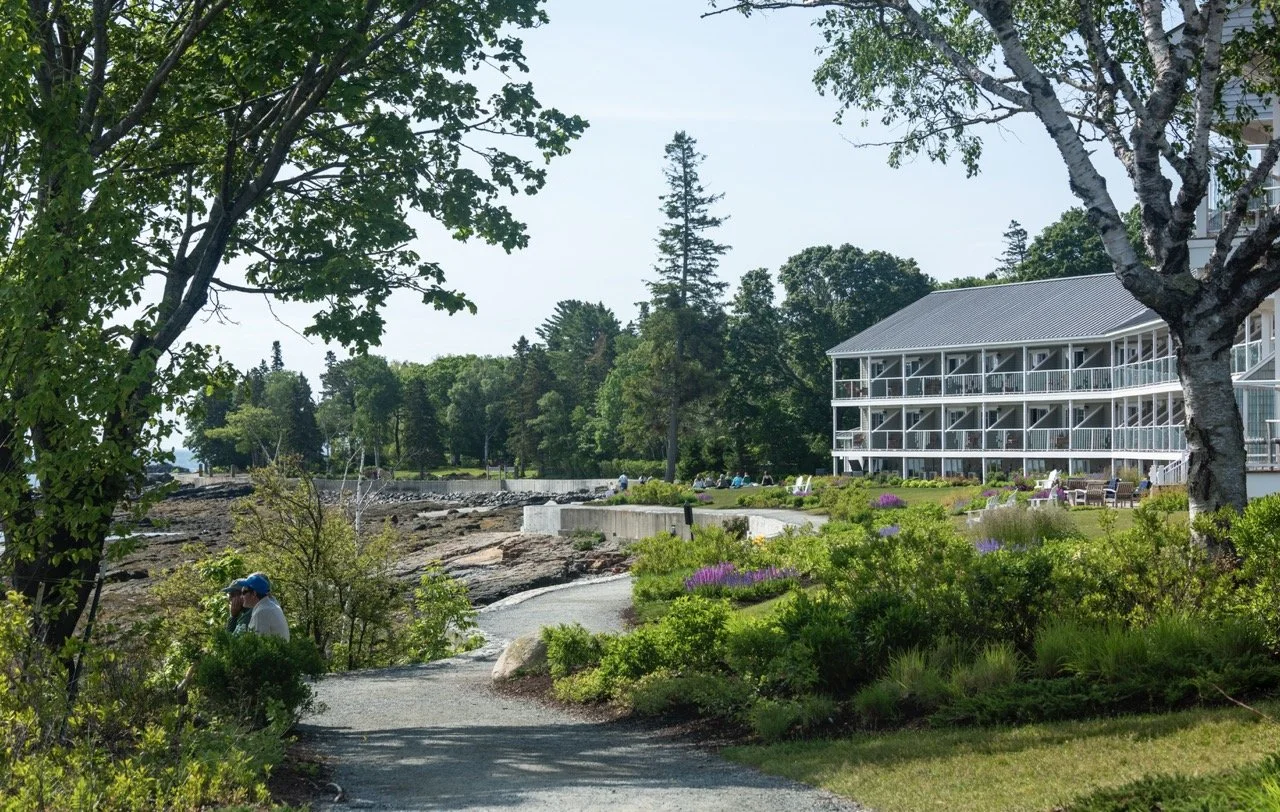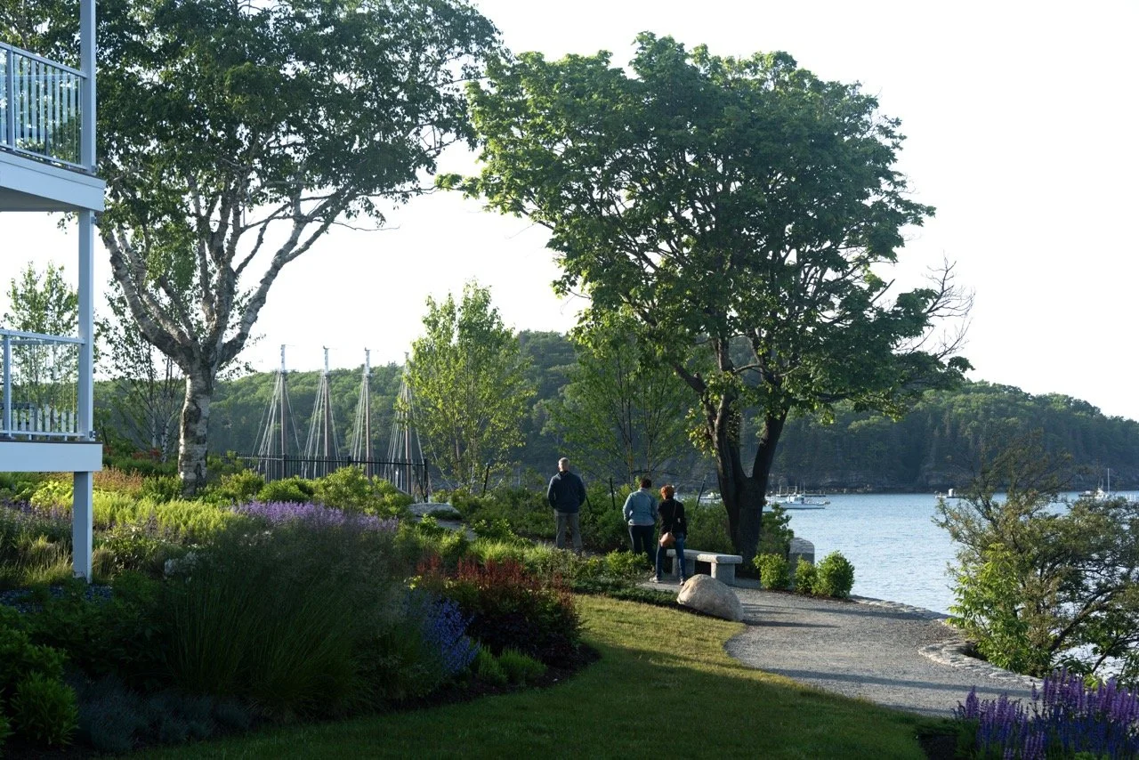 The Bar Harbor Inn is a classic New England destination located on the waterfront in the heart of Bar Harbor. The Inn grew haphazardly from an 1887 shingle-style building to an 8-acre complex including hotel wings accommodating 150 guest rooms, a spa building, and a pool. LARK Studio has been working with the Inn for a decade on designing and implementing a campus plan that has included renovation and upgrades to circulation, parking, and building access. Additional phases of the plan have included a restaurant terrace, spa, hot tubs, patios, gardens, an infinity-edge pool, and a wedding lawn that looks out across the bay. Most recently LARK assisted in reconstruction of an oceanfront path and seawall that were washed out in winter storms, adding seating, terraces and extensive ornamental plantings along the path and around the buildings as part of the project.